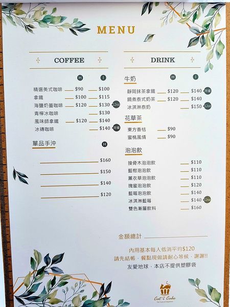 以下是咖啡及各式飲品部份: