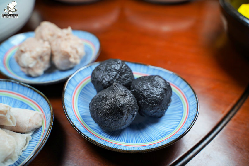 我個人很愛點墨魚貢丸,黑嚕嚕不規則的丸子