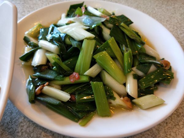 【雞油炒三星蔥】:來宜蘭一定要吃當地相當有名的三星蔥啦,搭配上他們的雞油真的是超級香的,不過這一到跟蔥爆牛肉裡面的食材幾乎一模一樣只差牛肉,所以建議就選一個來點就可以了