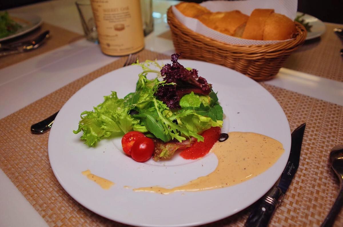 第一道菜先出沙拉,那個沙拉醬也是唯典客自製的,吃起來很清爽,且菜量也很夠,再吃個幾樣水果,挺開胃的~