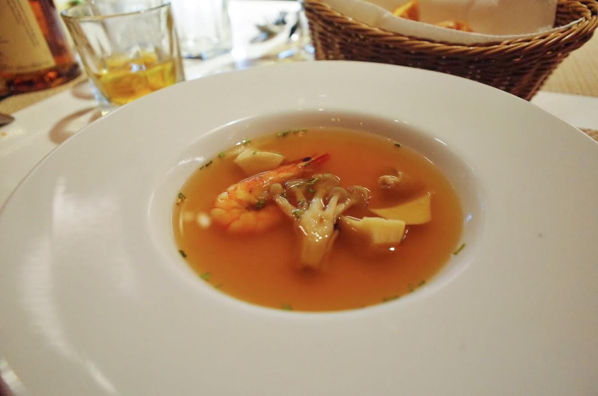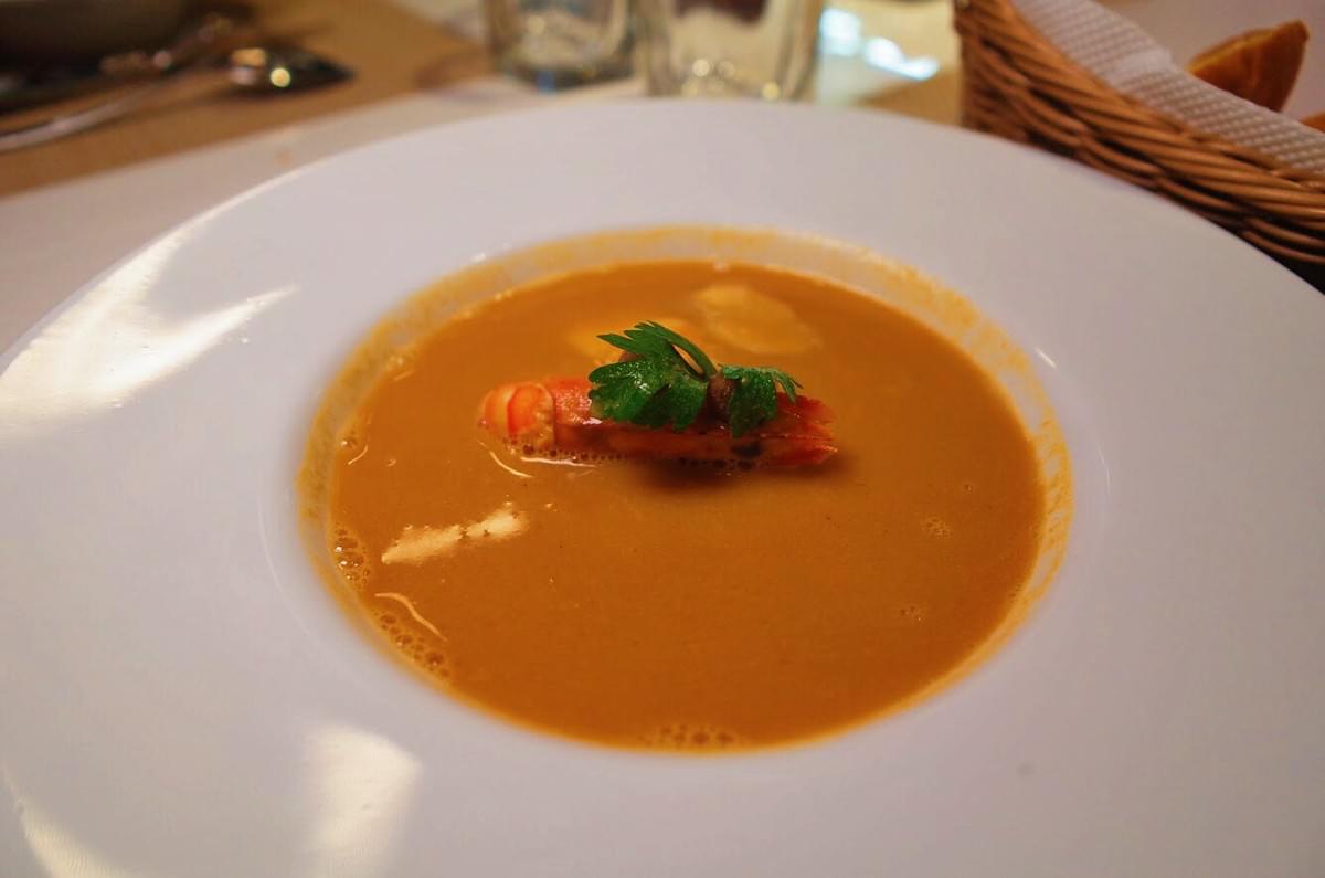 這湯看起來有點像南瓜濃湯,一上菜時我還真的以為是南瓜濃湯(誤)~其實這湯是馬賽魚湯啦,湯裡頭有鯛魚片、蝦子,廚師特別強調這湯裡有一點點的番紅花,所以懷孕的人是不能吃的喲,如果有孕婦想到唯典客用餐,要記得跟店家說哦!