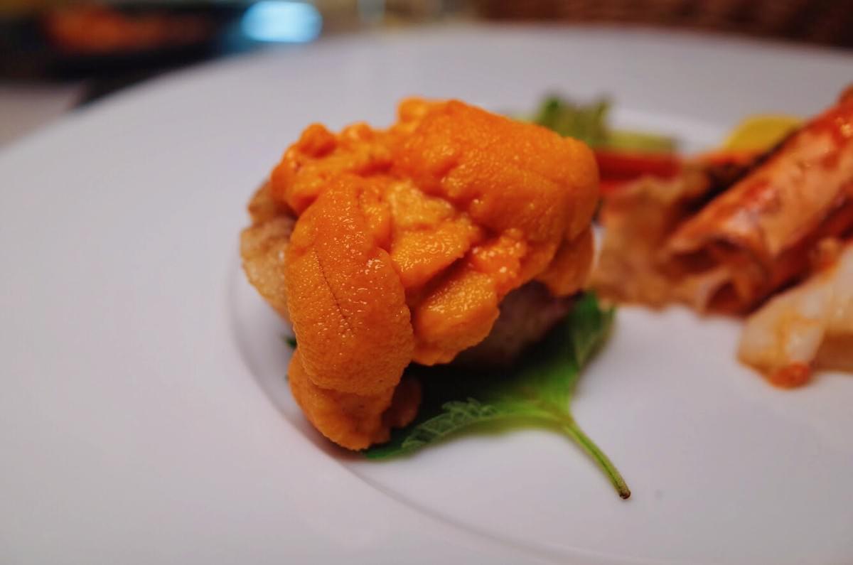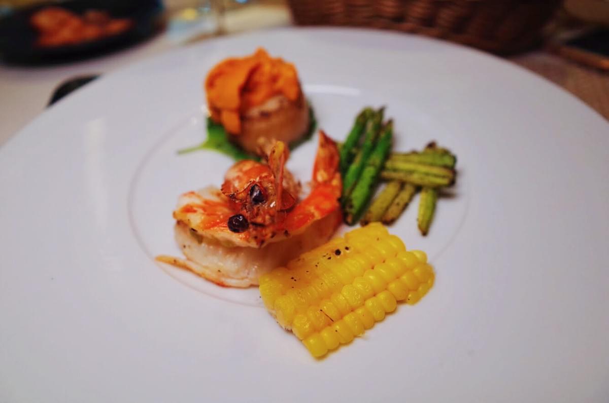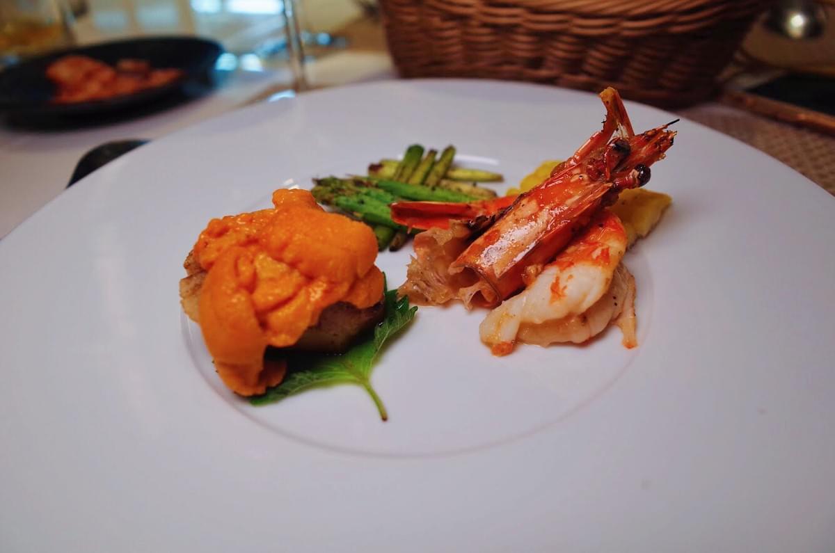 海膽有沒有超!多!這道菜剛上的時候,我就覺得也太大器了吧(´▽`ʃ♡ƪ) 干貝超大顆,海膽份量也很足,旁邊的蘆筍與玉米都是可以吃的配菜,個人建議干貝跟海膽一起吃,超!爽!!