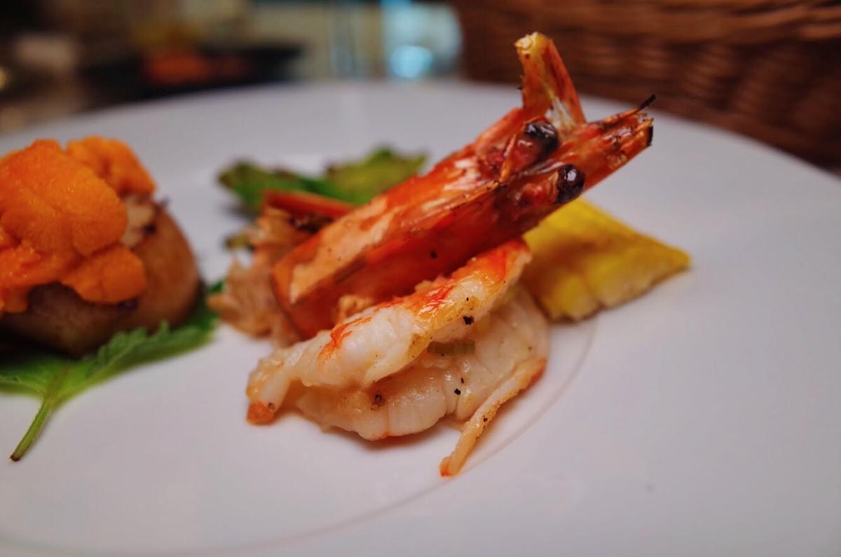 旁邊的草蝦也很大,咬下去是非常有彈性的那種口感,再喝一口白酒或威士忌~