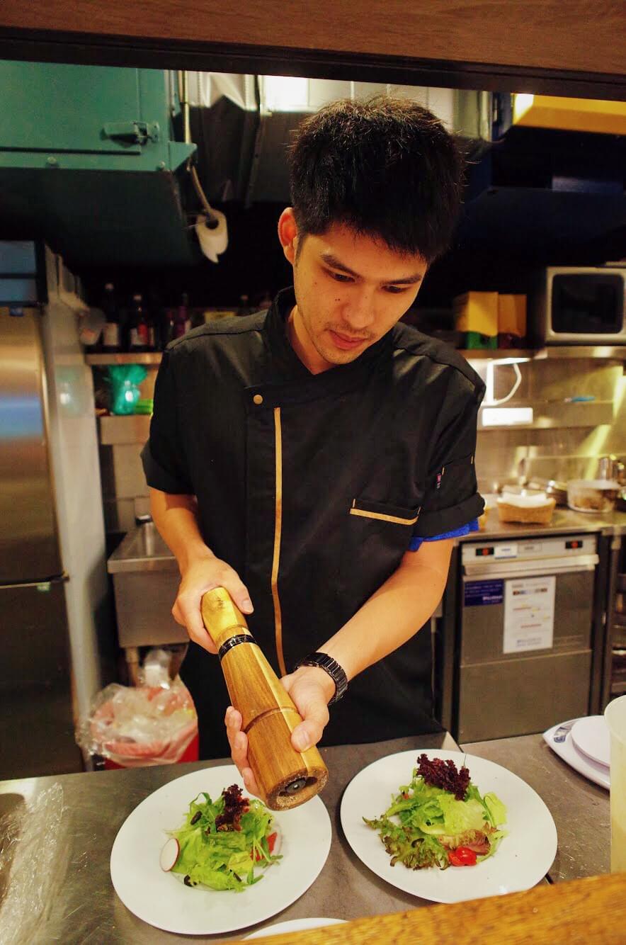 唯典客的廚房屬於開放式的,讓客人能看見廚師處理餐點,也能與廚師喝一杯或聊個天XD 完全就是去朋友家的感覺~