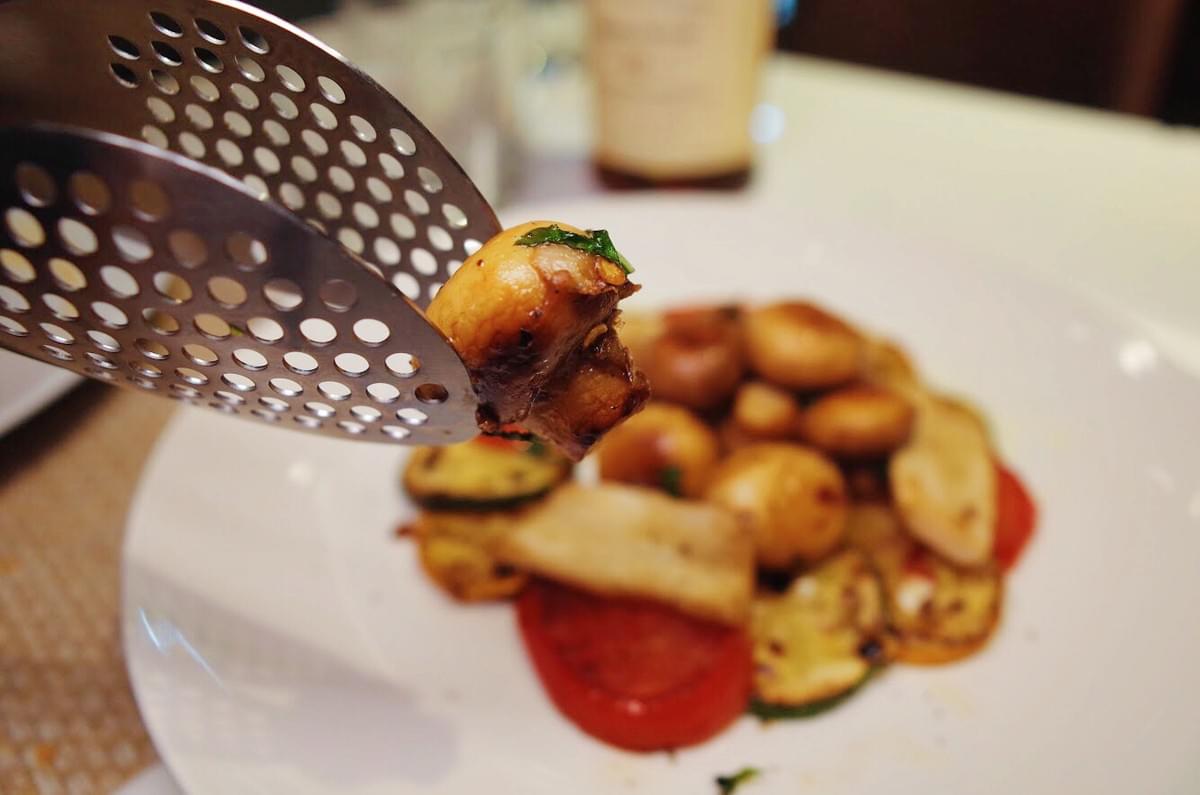 這道菜不得不說真的好好吃,裡面的櫛瓜搭配上杏鮑菇以及紅椒還有蘑菇,整盤吃完也不膩,因為櫛瓜與紅椒平衡了整個調味,讓原本可能吃完會很膩的一道菜,變得相當清爽~