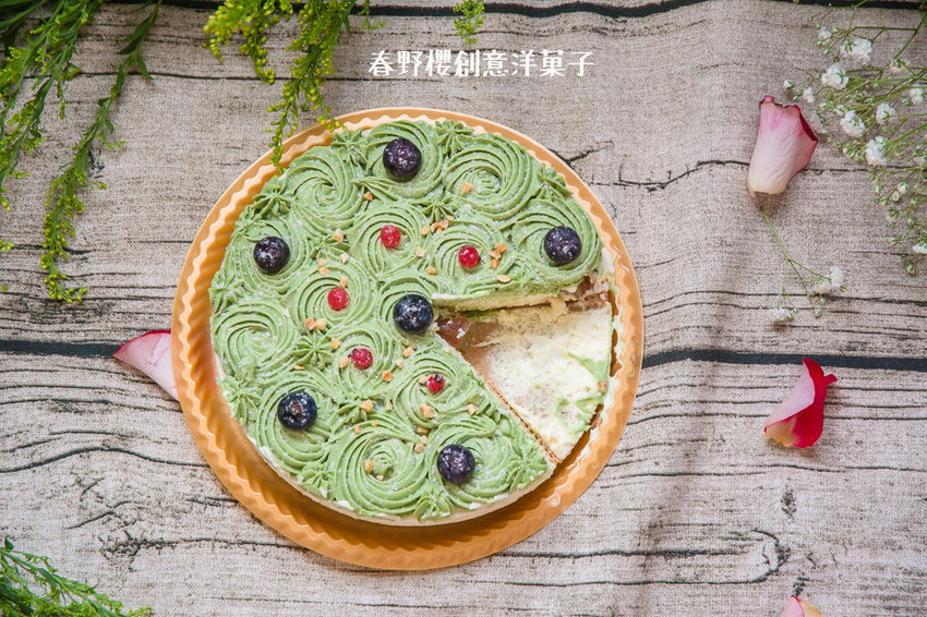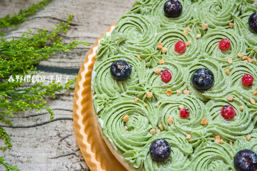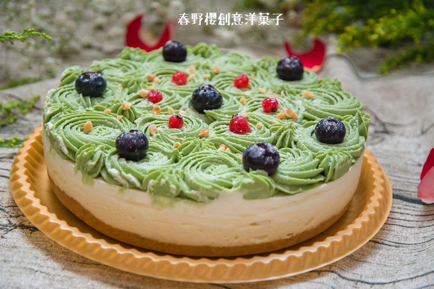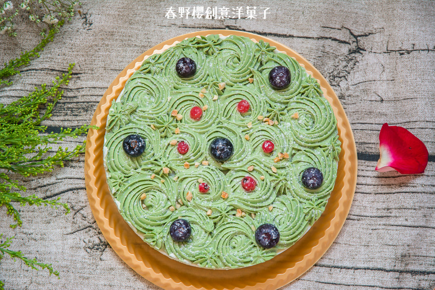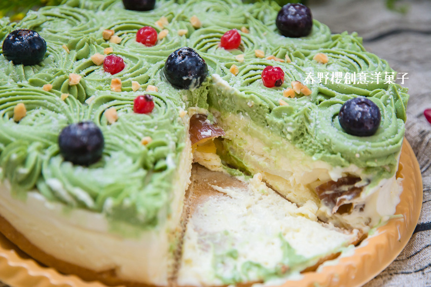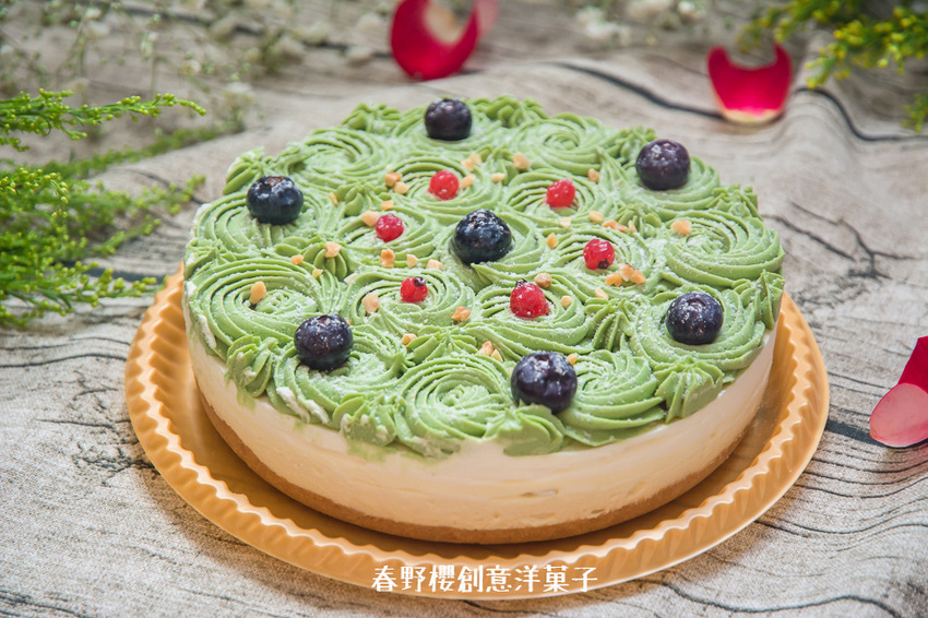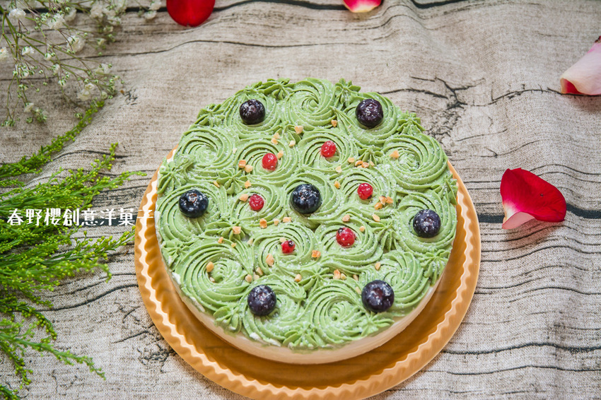 抹茶乳酪藏心,我看到這蛋糕的第一眼就覺得這蛋糕也太美了吧!上面的一朵又一朵的擠花,根本可以算是藝術品了,不要以為這蛋糕只有這樣而已,