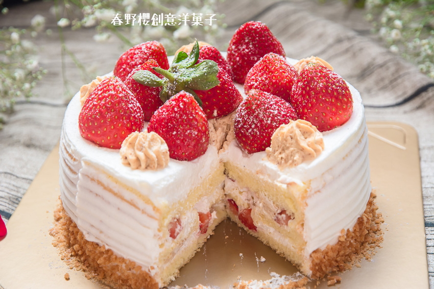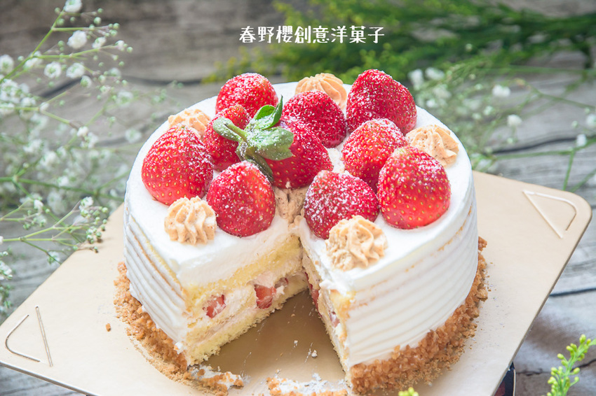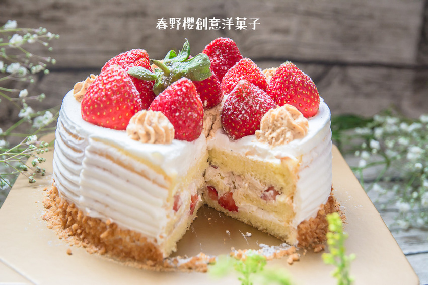 春野櫻創意洋菓子在今年草莓季節到來的同時,也推出了季節限定的草莓系列蛋糕,草莓系列產品又分成很多種,有一大群人可以一起享用的6吋和8吋蛋糕,
