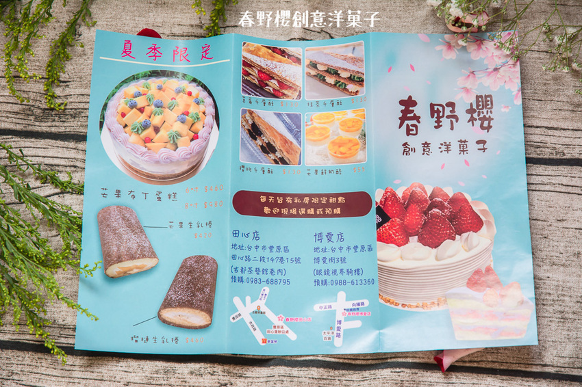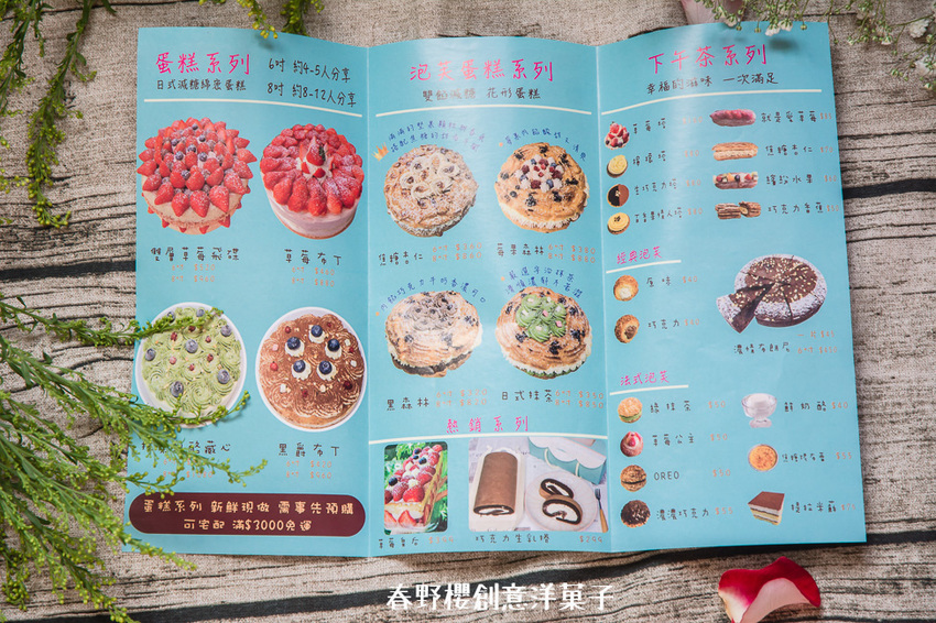 最後就是要附上春野櫻創意洋菓子的DM啦!他們有分成蛋糕系列、泡芙蛋糕系列、下午茶系列和熱銷系列…等等,其他還有像是一些季節限定的口味,