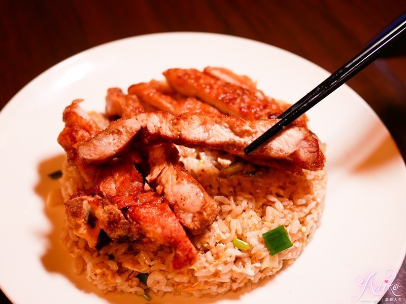 上頭的厚切排骨看起來炸得乾爽不油膩,而且超級有古早味,底下的炒飯粒粒分明有夠爽口