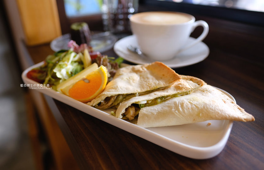 這一份薄餅壓得較扁,內餡稍微不平均,擺盤上就可惜一點點,和友人的那份的食材不太一樣,應該是還在微調餐點。
