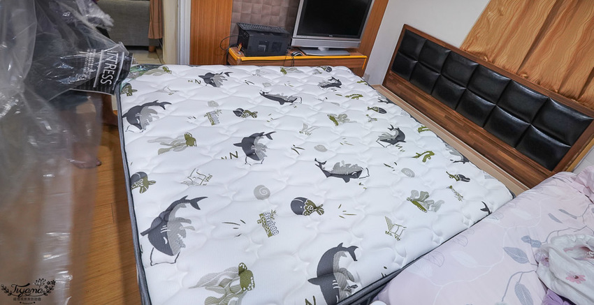 5公分天然乳膠,相對床墊較高,躺上去的乳膠觸感和軟硬好喜歡!!緹編是睡眠中易翻來翻去的人,緹爸又淺眠,鯊魚爸爸克服了我們惱人的問題,我們也比以往有更好的睡眠品質。