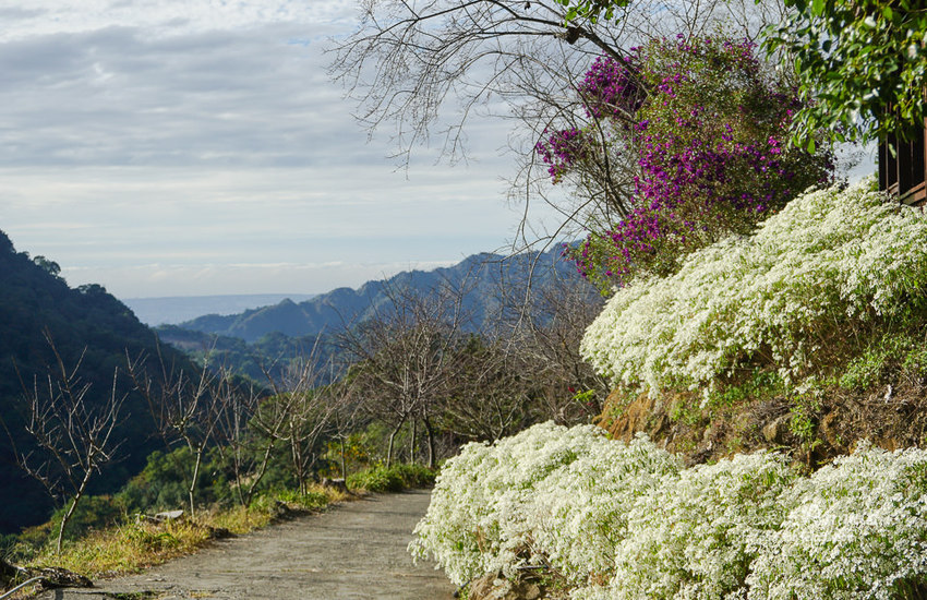 走到半山腰,又是一抹雪白美景,天氣好時可以在這遠眺台中盆地的景觀。