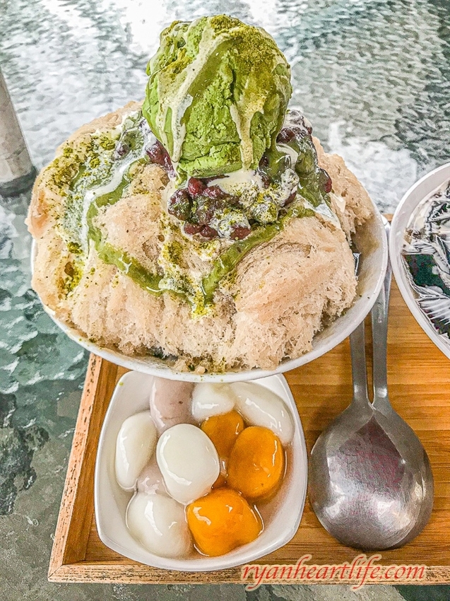 最後則是抹茶仙草雪花冰,由仙草牛奶冰磚所製作成的綿密雪花冰,除了仙草味道濃郁,還不斷散發著濃濃奶香,搭配一小碗手工芋圓、地瓜圓和白玉湯圓,再加上一球口味超濃郁的抹茶冰淇淋,說這碗只要 130 元?而且還是在觀光風景區?有誰會相信啊……
