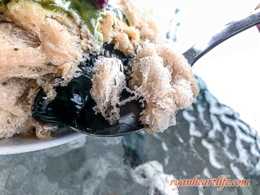 撥開雪花冰之後才發現,原來底下居然還躲了一層嫩仙草,天啊,仙草,你也太調皮了吧!