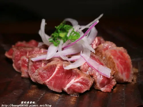 澳洲和牛外橫膈膜是唯一裡面有先抓醬的,有人可能會覺得油脂多會比較膩,抓上醬後有鹹味就可以平衡味蕾上的感覺