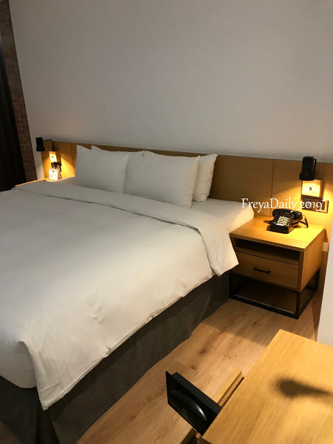 其實整個藍天飯店的建築設計,都保留著過去的舊樑柱及老牆面