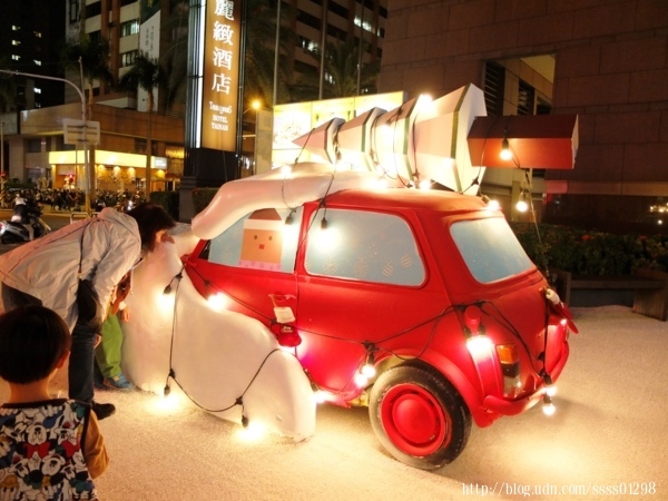 ▲有台非常吸睛的耶誕小汽車裝置造景停在廣場旁,白雪覆蓋著車頭,車頂還有棵小聖誕樹,畫面實在趣味!