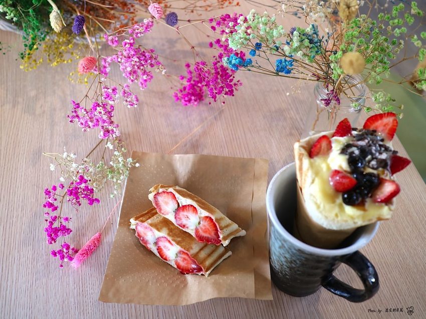 6.八字眉芯芯:【t&f手作吐司–安平店】~創意熱壓吐司專賣店|每日限量30碗海鮮鍋燒|網美最愛夢幻乾燥花空間