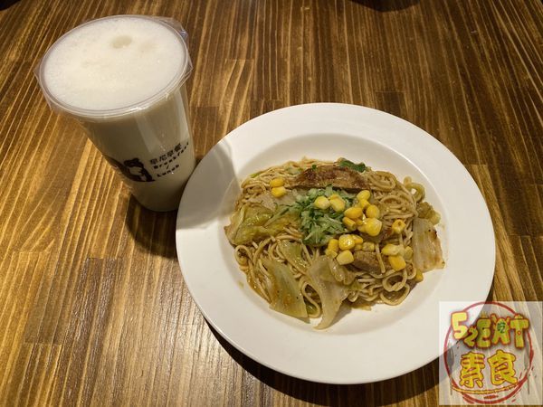 ▼不免俗的還是點了台中人最愛的早餐炒麵,沙茶牛肉炒麵有著濃郁的黑胡椒香氣搭配玉米、美生菜與小黃瓜,真的可以吃飽飽。