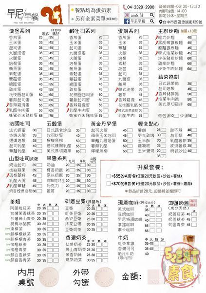 台中的蔬食早午餐越來越多了,今天為了朝聖一大早就全家跑來吃一家主打平價種類多樣化的蔬食早午餐,早尼早餐在西區忠誠街靠近公益路,想當然爾附近是美食的一級戰區,店內以蛋奶素為主、但全素者可在點餐時提前告知,也可以將餐點做成全素喔!