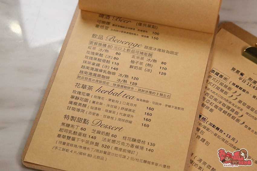 來看看店家的Menu,以午晚餐為主的南洋風味餐點、炸物、手工甜點以及飲品,而南洋風味的餐點以套餐為主均含湯品、飲品、甜點,除此之外也可以以加購方式升級甜點哦~