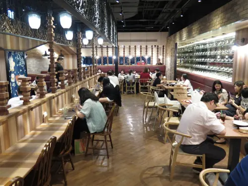 有多張隔間式的多人座位(一桌大概4~6人)還有開放式廚房前的吧台座位,