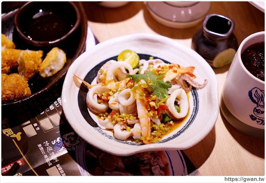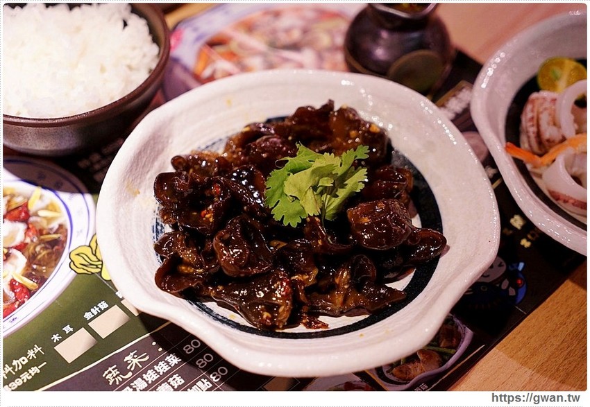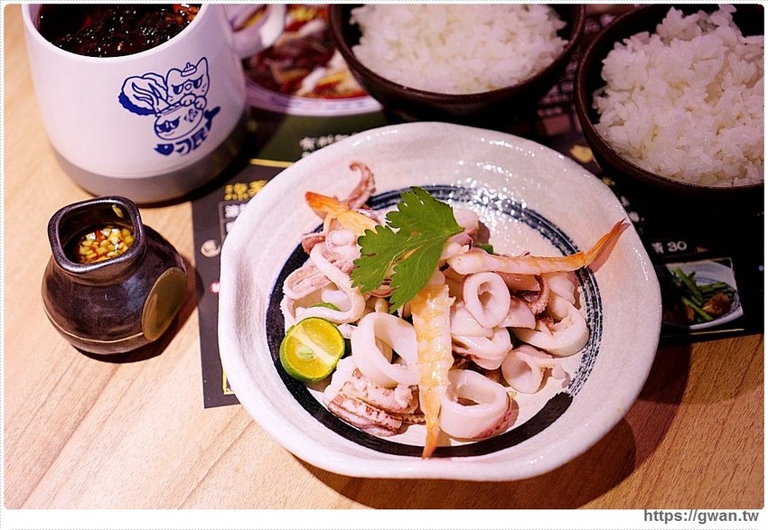 醬汁小卷是菜單上的限定小菜,有川燙過的新鮮小卷和蝦子,海鮮底下還墊滿了秋葵,食用前再淋上店家特製的辣椒醬汁,酸鹹辣的過癮滋味,店家自己也很愛吃