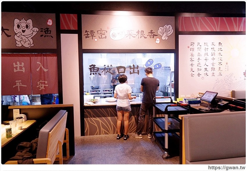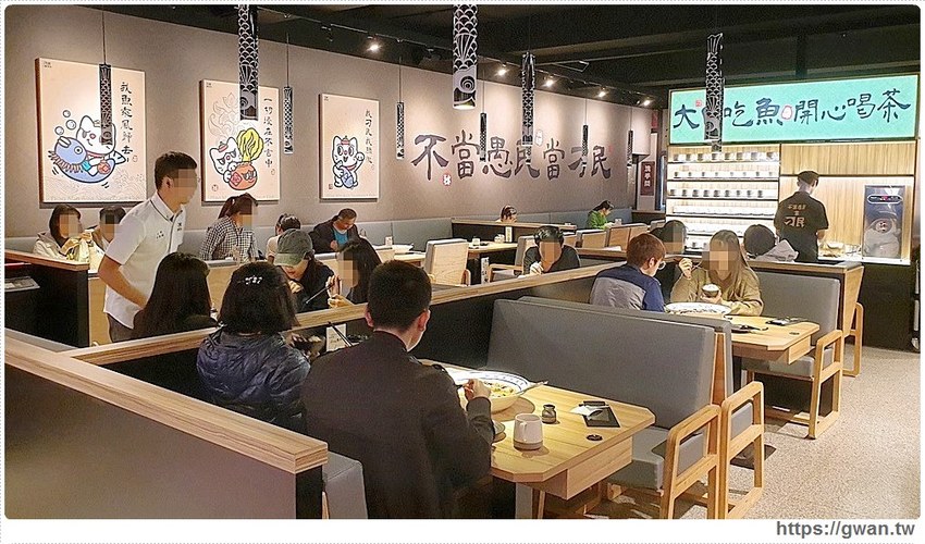 連取餐口都特別設計過,魚從口出、出入平安,營造出一種身在海港的感覺,讓客人吃到最新鮮好吃的魚!如果剛好坐在出餐口附近,也能看到出餐前淋熱油的精彩畫面