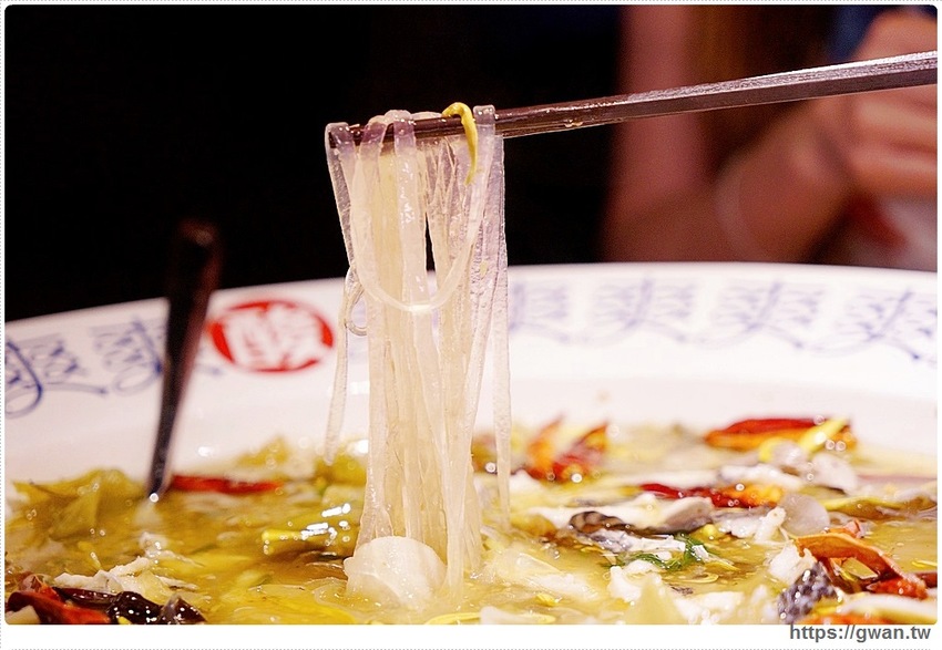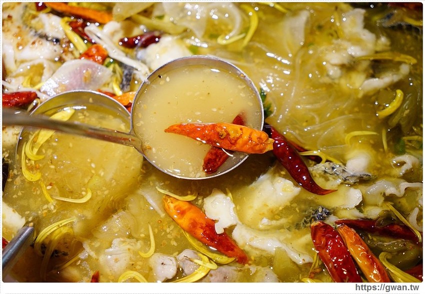 綠色的湯頭裡有超多辣椒,但其實有調整過比較適合台灣人的口味,平常有在吃辣的朋友應該都可以接受,酸度則是來自店家自製的酸菜,天然酸味不會很嗆口,另外~如果覺得花椒粒有些礙口的話,記得在菜單上勾選『撈除花椒』,廚房就會幫你先把花椒粒挑起來呦