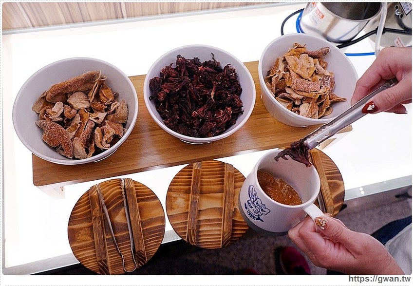 第一眼還以為這裡是醬料區,打開碗蓋才發現裝著陳皮和洛神啊!店家建議的沖泡比例是2片陳皮+1片洛神花,本來還想說這樣會不會太淡,結果泡一段時間就變得好濃郁,真的不要貪心加太多XDD
