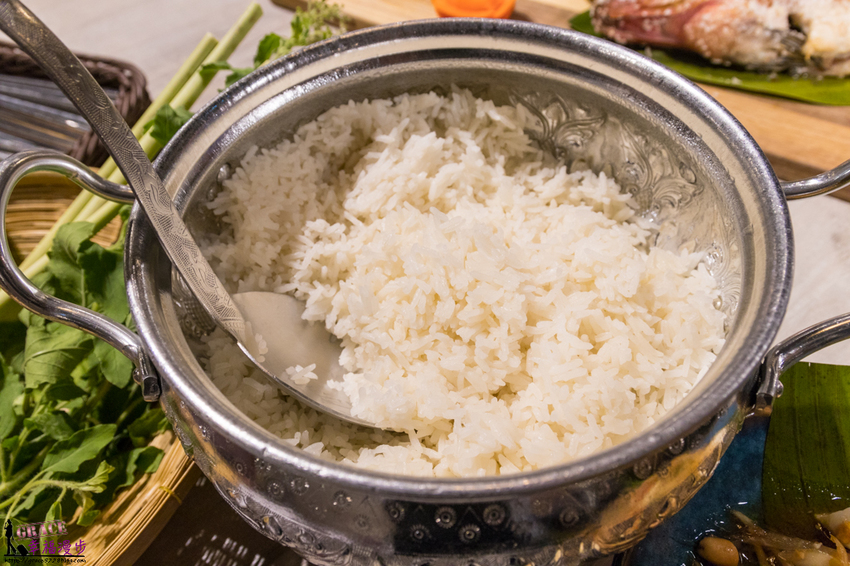 吃泰式料理一定要搭配米飯,尤其是茉莉香米的米香氣更足,米飯的口感軟硬適中,且用整個銀器裝成米飯更顯貴氣啊!