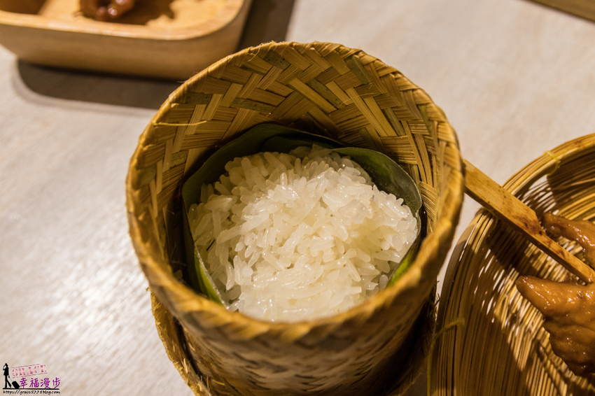 母併(泰式烤豬肉串),這一道製作過程是非常繁瑣,豬肉串是以手工方式一層肥肉和一層瘦肉串起來,搭配泰國的糯米飯一起吃喔!