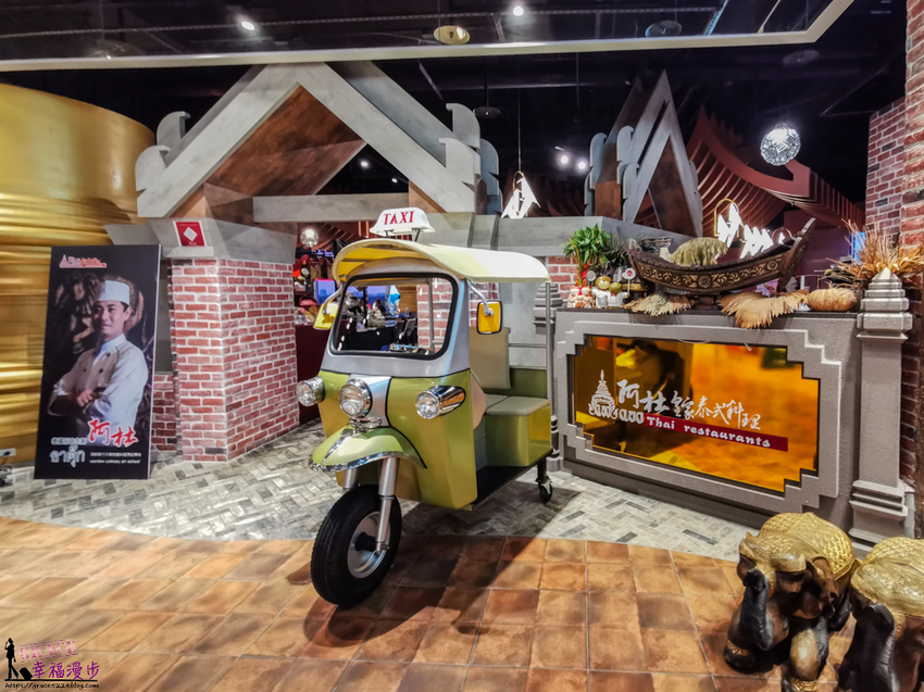 門口有擺放一台泰國的嘟嘟車,這台車子可是吸引很多人在此拍照,還沒進入到裡面用餐就已經感受到濃濃的泰國氛圍,阿杜皇家泰式料理 可是泰國商務處【泰精選】認證的餐廳喔!看到門口阿杜主廚照片後方就是泰精選認證的標誌。