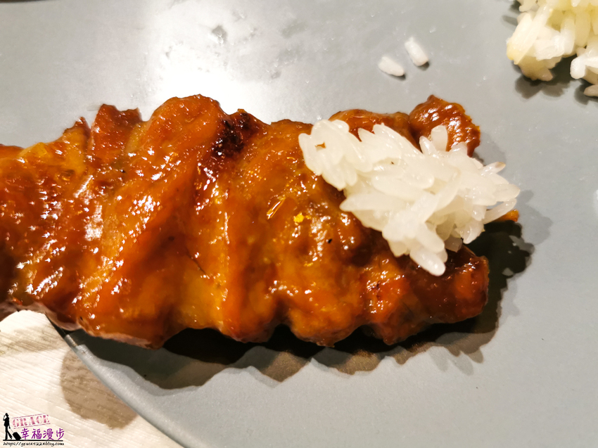豬肉肥而不膩搭配糯米飯一起入口,滑嫩的肉串與米香氣結合,香甜又美味啊!