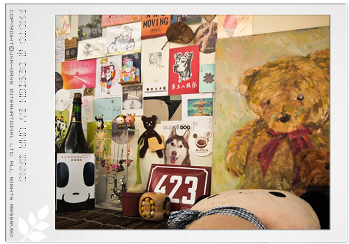 整面牆都是動物的小玩意,從明信片、油畫、小吊飾到熊熊抱枕都有