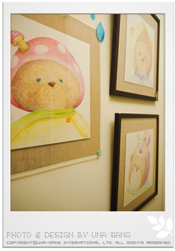 牆上也掛了明信片上塗鴉的原稿作品,用相框一幅幅的收藏