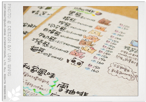 熊掌櫃將飲料的menu送上桌,也太可愛了!都是手繪風格呈現的呢!