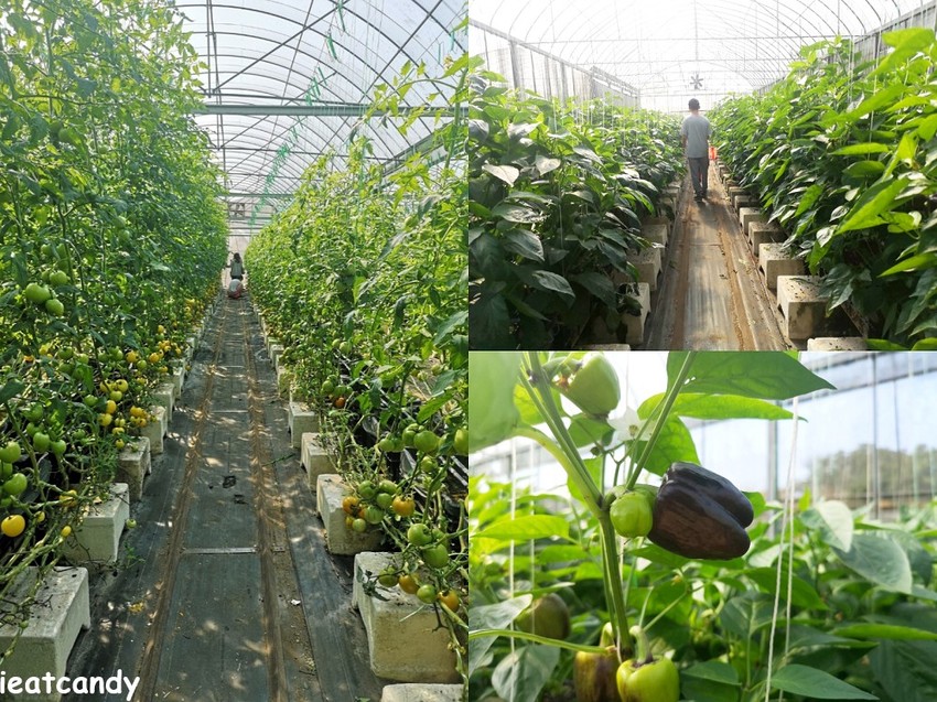 後方是採果區,有分番茄、甜椒、草莓,每種蔬果都有不同的摘採方式,像是番茄可以直接手採、甜椒則需要用剪刀剪,摘採完之後到入口前的櫃台秤重計價即可。