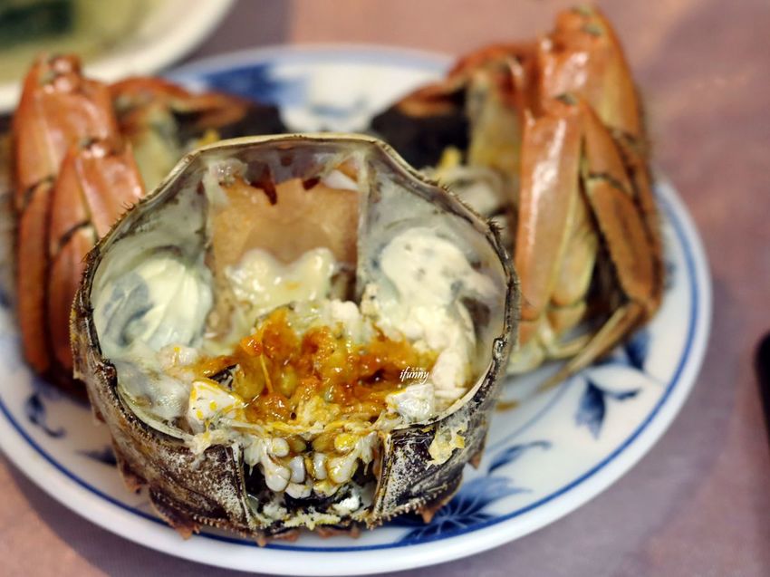 這蟹黃好飽滿啊!記得蟹腮、蟹胃、蟹腸及蟹心是要拿掉不能吃的喔!因為艾方妮忙著吃蟹就沒有拍細節了喔!
