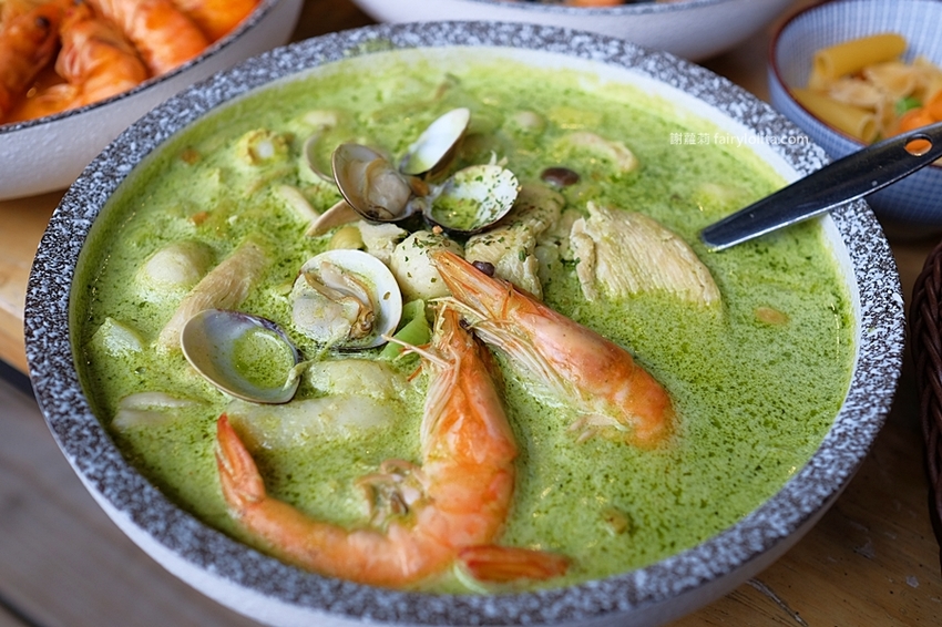 湯汁本身的口感還濃稠的,頗有一種像在吃日式拉麵的錯覺,濃濃青醬香氣十分迷人,其中依稀還蘊含著一股含蓄奶油香,像現在這種冷冷的天氣來上一鍋,你真的會覺得充滿幸福感。