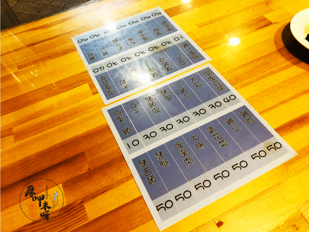 | 小菜區、菜單上、跟用餐桌上都有小菜的明細價目 |