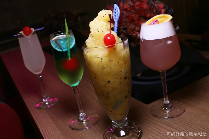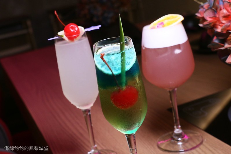 從左至右,荔枝酸酒、水底情深、百香冰沙、亂世佳人