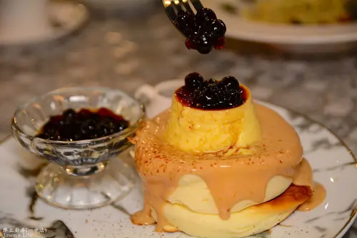 店內位置數不多,滿滿都是乾燥花的裝飾,假日人多,建議事先訂位,目前有優惠活動:平日凡訂位用餐下列早鳥時段11:00~11:30、17:00~17:30,依照用餐人數贈送「迷你舒芙蕾鬆餅」,口味:珍珠奶茶、港式流沙。