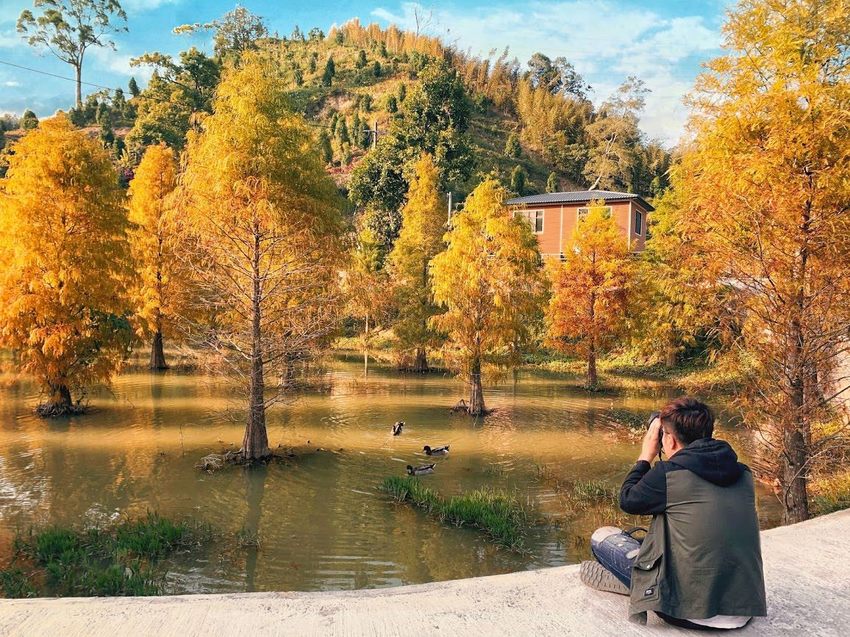 ▲找到一個很棒的視角,結果我一坐下其他人也跟著坐下哈哈….這張還有三隻鴨鴨入鏡,讓整張照片美度爆表,簡直是張明信片!