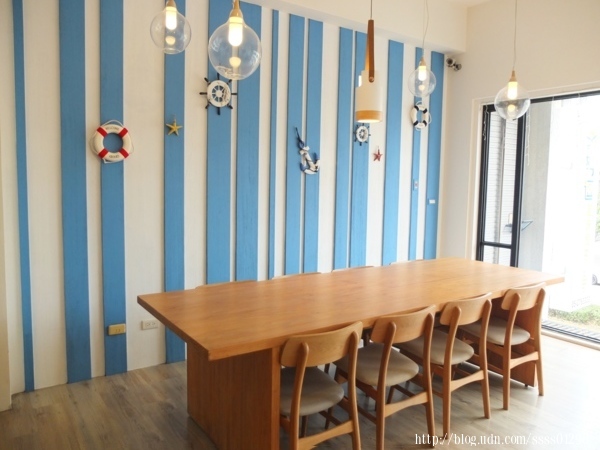 主色系為藍白色搭配,結合木頭質感更顯愜意氛圍,感受是很清爽舒適的