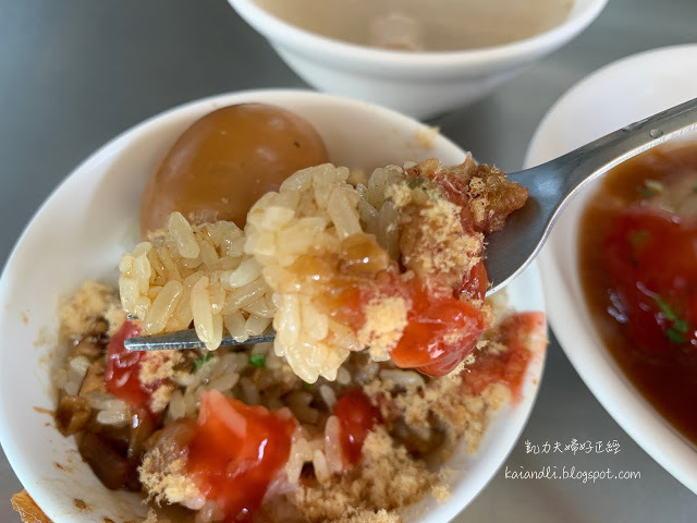 小碗米糕20+滷蛋8元。糯米煮的Q軟帶勁,配上香肉燥、魚鬆,非常下飯。