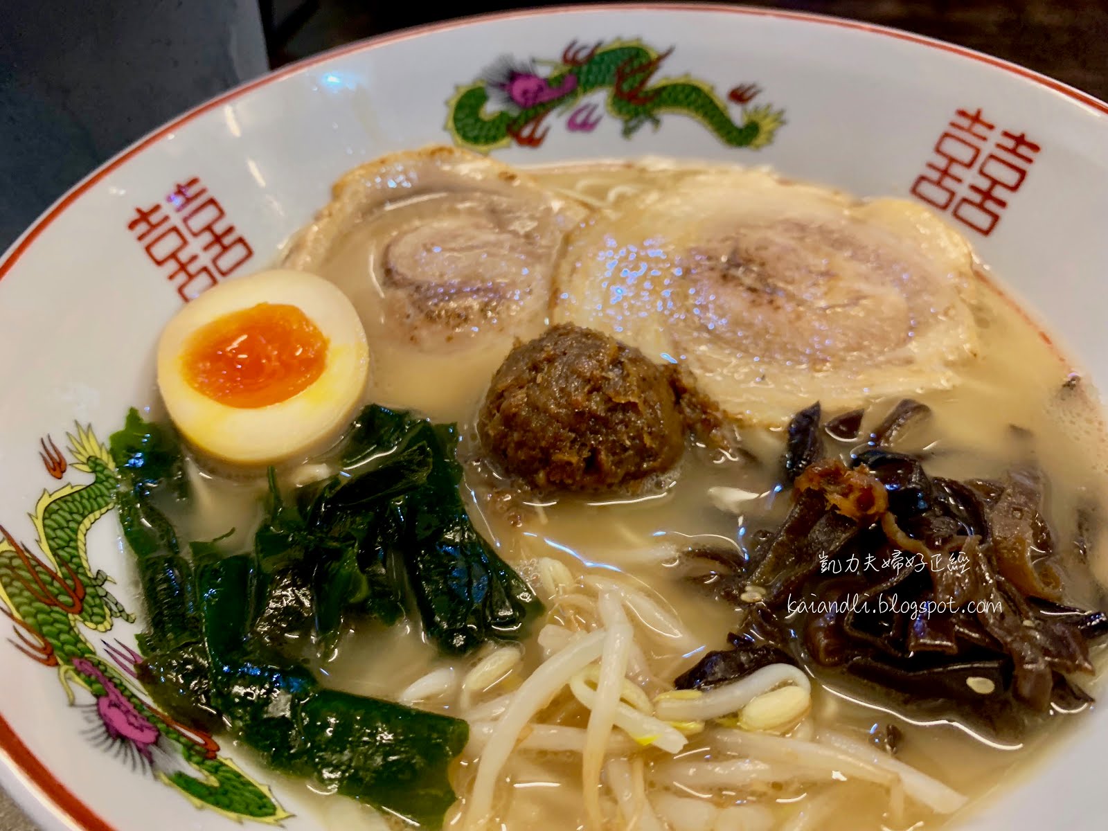雖然厚切叉燒號稱一公分厚,不過距離上一個吃飯時間太近,怕吃不完,還是點了一般豚骨拉麵及炸物。