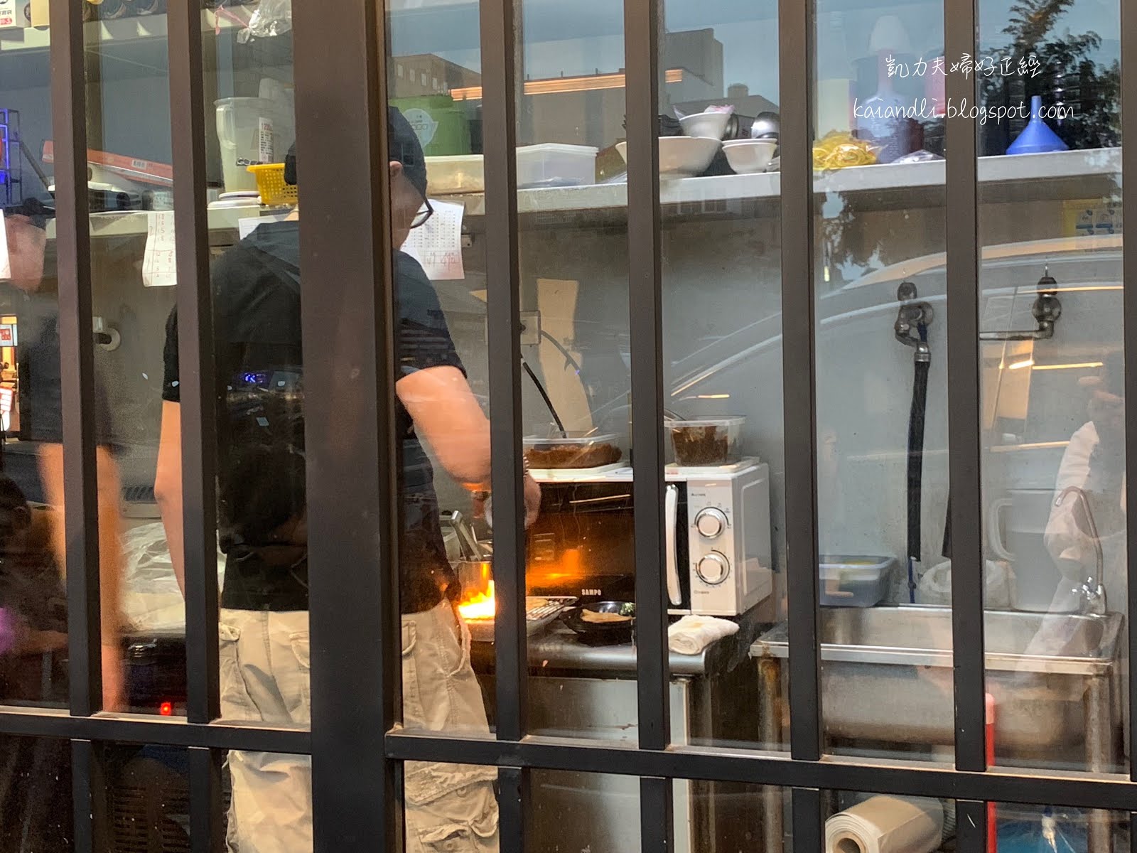 餐廳廚房挺透明的,可以看到年輕的師父烘烤著叉燒肉。在微波爐旁邊大火燒,老實說我有點擔心他們的