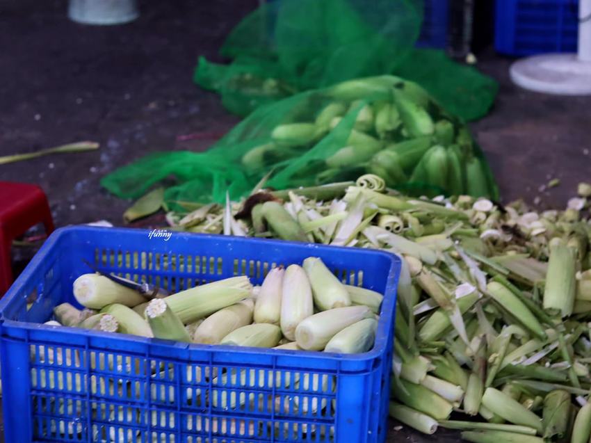 一旁冒出煮玉米的蒸氣。