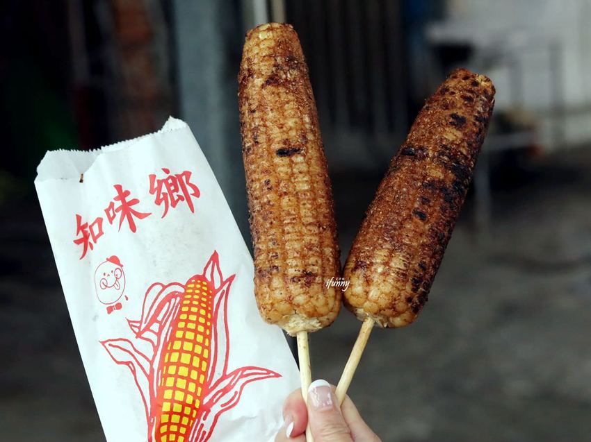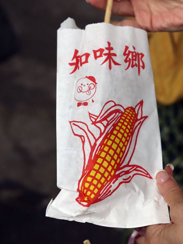 接著我們來到斜對面的知味鄉烤玉米,這天熟門熟路的友人,已事先打電話預訂了!到了現場看到排隊人潮還真是有點嚇到!而這天受到驚嚇的還有一件事,那就是艾方妮下車時,竟還有專人幫我們撐傘,真是太令人驚訝了!不過就是烤玉米,不是嗎?雖然說附近有很多攤也是在賣烤玉米,但可能是真的競爭很激烈!